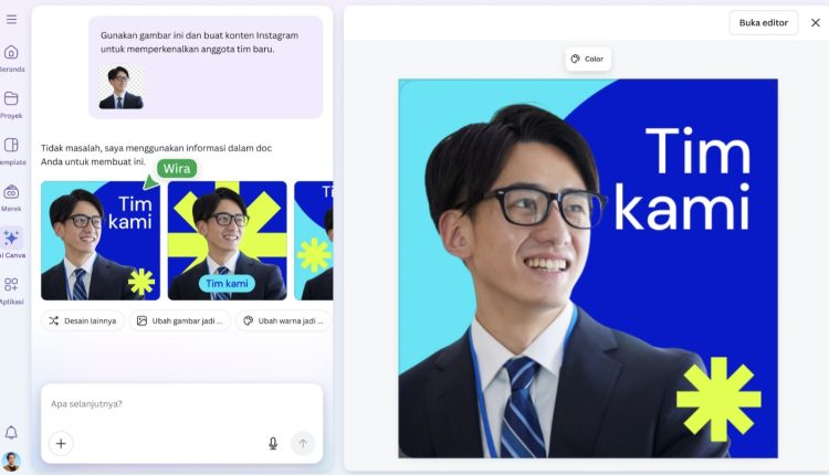 AI Canva tersedia bagi seluruh pengguna Canva dalam bahasa dan lokasi baru ini mulai hari ini di canva.com/ai.