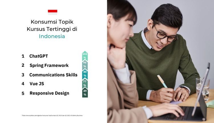 Dengan menganalisis data dari hampir 15.000 pengguna Udemy Business di seluruh dunia, laporan ini mengungkap bahwa keterampilan dalam bidang AI generatif tetap menjadi pilihan utama di berbagai sektor industri. Di Indonesia, ChatGPT adalah topik yang paling diminati, dengan peningkatan sebesar 142% pada Q2 2023 dibandingkan dengan kuartal sebelumnya. Secara total, lebih dari 1,8 juta pembelajar telah mendaftar di kursus-kursus terkait dengan ChatGPT di Udemy.