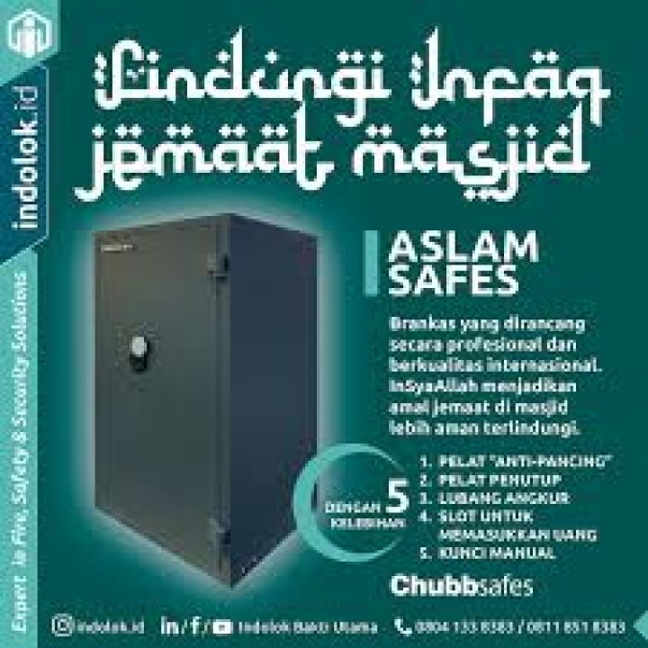 Mengantisipasi tingginya angka pembobolan kotak infak baik yang terjadi di masjid maupun rumah ibadah lainnya, membuat perusahaan pemegang lisensi Gunnebo ini merilis Aslam Safes yang dirancang secara detail untuk melindungi sedekah maupun infak masyarakat agar aman dari upaya pembobolan. Dilengkapi dengan berbagai fitur unggulan, brankas ini diyakini mampu menjadi salah satu indikator keseriusan manajemen rumah ibadah dalam menjaga amanah dari jamaah.
