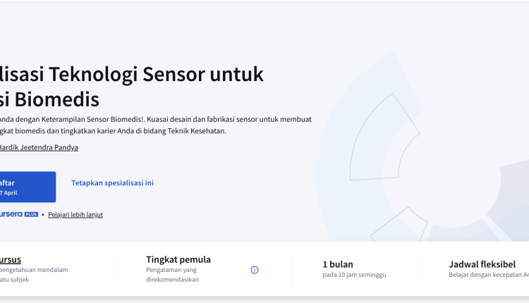 Spesialisasi ini akan membekali Anda dengan keterampilan dasar dan praktis dalam merancang, menganalisis, dan menerapkan sensor biomedis. Anda akan mempelajari bagaimana sensor ini dibuat berikut dengan cara kerjanya, menjelajahi aplikasi perawatan kesehatan di dunia nyata, dan mengerjakan proyek akhir yang bersifat praktikal \ untuk merancang sensor analisis napas. Program ini juga mencakup aplikasi AI dan aspek regulasi, yang mempersiapkan Anda untuk berkarir di bidang rekayasa biomedis dan inovasi teknologi kesehatan.