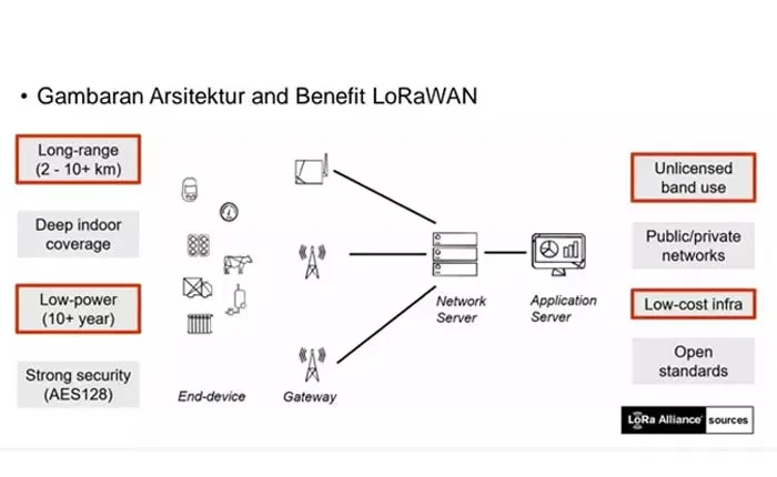 Puput Dani Prasetyo Adi, peneliti Pusat Riset Telekomunikasi BRIN menjelaskan LoRaWAn merupakan salah satu teknologi long ranged, memanfaatkan radio frekuensi Lora module dengan data rate yang rendah, cakupannya sangat luas, dan memiliki konsumsi daya yang relatif rendah.