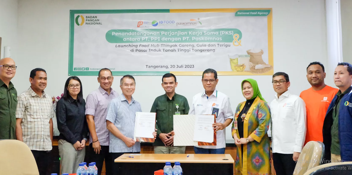 itechmagz.id – PT Perusahaan Perdagangan Indonesia (PPI) member of ID Food lakukan penandatanganan perjanjian kerja sama penyaluran dan pendistribusian komoditas pangan dengan PT Paskomnas yang terjalin melalui dukungan Badan Pangan Nasional pada Kamis (20/07/2023), di Pasar Induk Tanah Tinggi, Tangerang.
