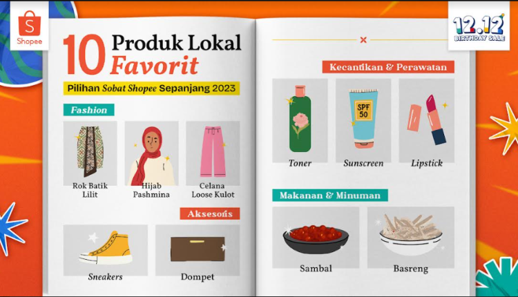 Melihat besarnya minat dan apresiasi masyarakat terhadap produk lokal, di momen spesial kampanye 12.12 Birthday Sale kali ini Shopee membagikan 10 Produk Lokal Favorit Pilihan Sobat Shopee Sepanjang Tahun 2023 mulai dari kategori fesyen, aksesoris, kecantikan, hingga makanan dan jajanan Nusantara: