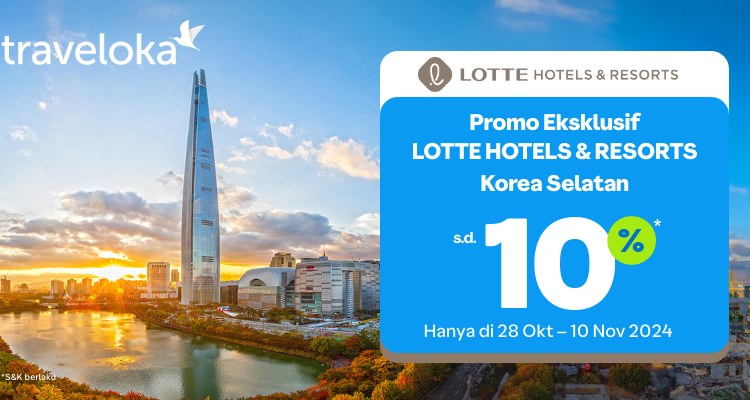 Jangan lewatkan penawaran eksklusif dengan diskon hingga 10% untuk menikmati pengalaman menginap yang tak terlupakan di Korea Selatan bersama LOTTE HOTELS & RESORTS dan Traveloka!